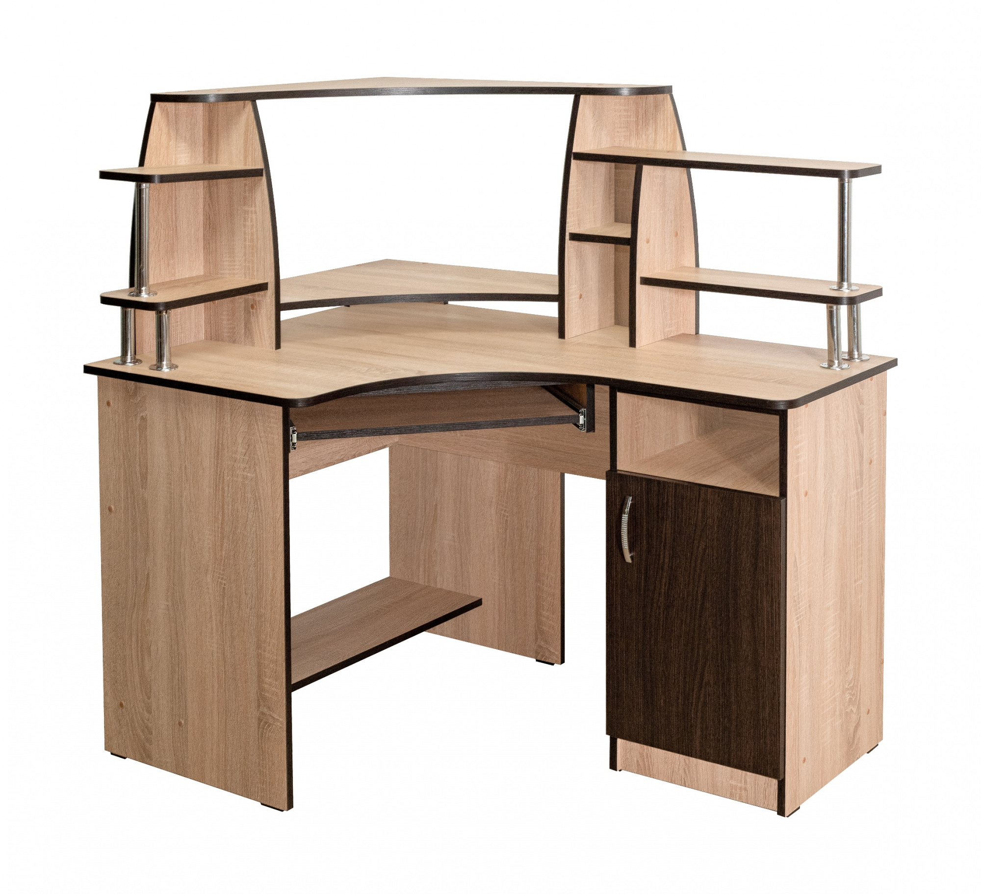 Складається з корпусу зі стільницею, висувної полиці під клавіатуру, ніші з полицями, що відкривається. Таке компонування дозволяє зберігати все необхідне для роботи та навчання.