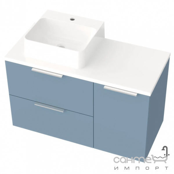 Подвесная тумба с раковиной на столешнице и корзиной для белья Mirater Mateo 100 матовая голубая, раковина Seed