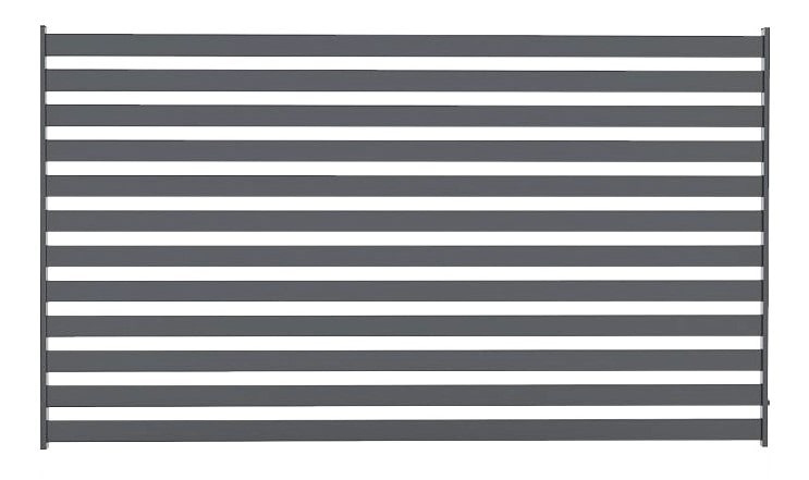 - Вигляд: Секція огорожі з горизонтальними ламелями. Таке розташування забезпечує сучасний та лаконічний дизайн, а також функціональність та простоту у догляді.