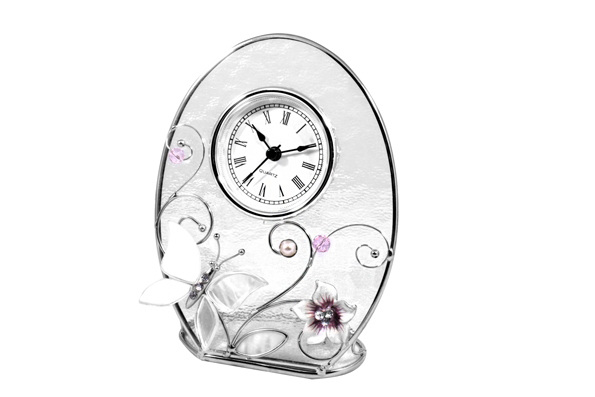 Елегантна колекція аксесуарів для дому Charme de Femme розроблена у французькому стилі. Для виготовлення настільних годинників Charme De Femme Дзвіночки та дзеркальний метелик використовувалися скло, нержавіючий метал, а також дзеркала. Легкість та легкість елементів колекцій додасть вишуканості та чарівності будь-якому інтер'єру. Годинник працює від однієї батареї АА, батарейка в комплект не входить. Годинник упакований у подарунковій коробці.