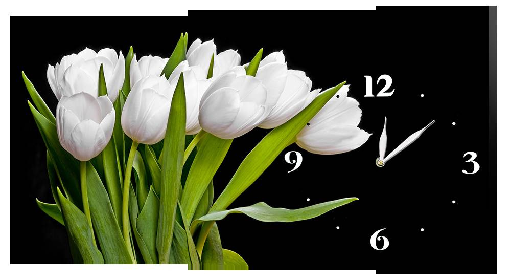 Опис Настінний годинник на полотні Декор Карпати c246 Білі тюльпани (Dwww72696)