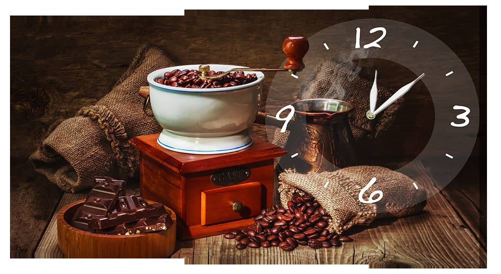Характеристики товару Настінний годинник на полотні Декор Карпати O-721 Кавові Зерна (iatM51362)