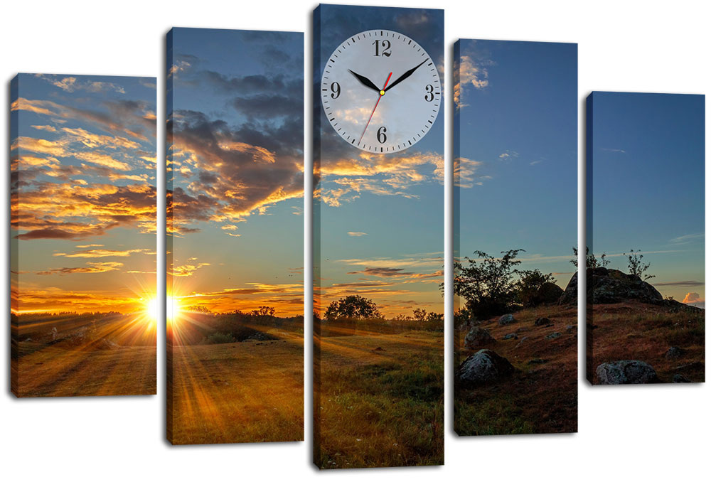 Розміри модулів: 32x80см – 1шт, 20x70см – 2шт, 20x60см – 2шт. Тихохідний механізм. Модульні картини з годинником – це стильне рішення для Вашого дизайну, яке миттєво перетворить навколишнє оточення! Модульний годинник - це кілька картин, які поєднуються тематичністю, сюжетною лінією або певною палітрою кольорів і доповнюються працюючим аксесуаром. Годинник-картина має якісний кварцовий механізм, який забезпечує тривалу ефективну роботу аксесуара з мінімальною секундною похибкою. Хочете купити годинник, але лякає дратівливий монотонний звук, який заважає відпочивати та міцно спати? Не хвилюйтеся, ці картини-годинники абсолютно безшумні! Ще однією приємною новиною для наших покупців, окрім доступної ціни від виробника, є річна гарантія на наш годинник.