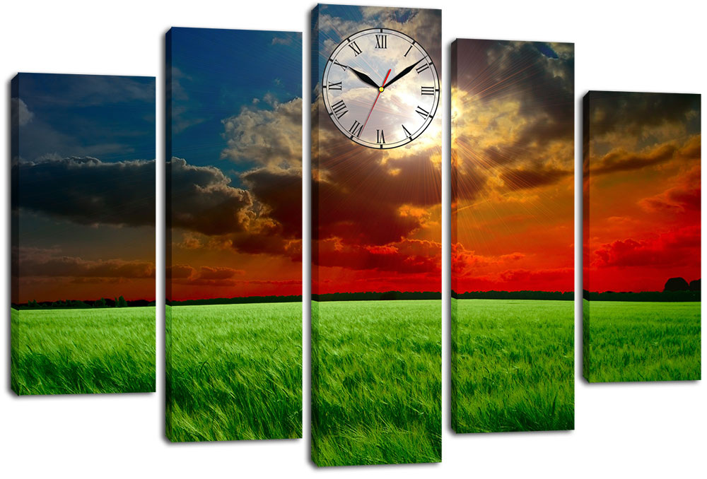 Розміри модулів: 32x80см – 1шт, 20x70см – 2шт, 20x60см – 2шт. Тихохідний механізм. Модульні картини з годинником – це стильне рішення для Вашого дизайну, яке миттєво перетворить навколишнє оточення! Модульний годинник - це кілька картин, які поєднуються тематичністю, сюжетною лінією або певною палітрою кольорів і доповнюються працюючим аксесуаром. Годинник-картина має якісний кварцовий механізм, який забезпечує тривалу ефективну роботу аксесуара з мінімальною секундною похибкою. Хочете купити годинник, але лякає дратівливий монотонний звук, який заважає відпочивати та міцно спати? Не хвилюйтеся, ці картини-годинники абсолютно безшумні! Ще однією приємною новиною для наших покупців, окрім доступної ціни від виробника, є річна гарантія на наш годинник.