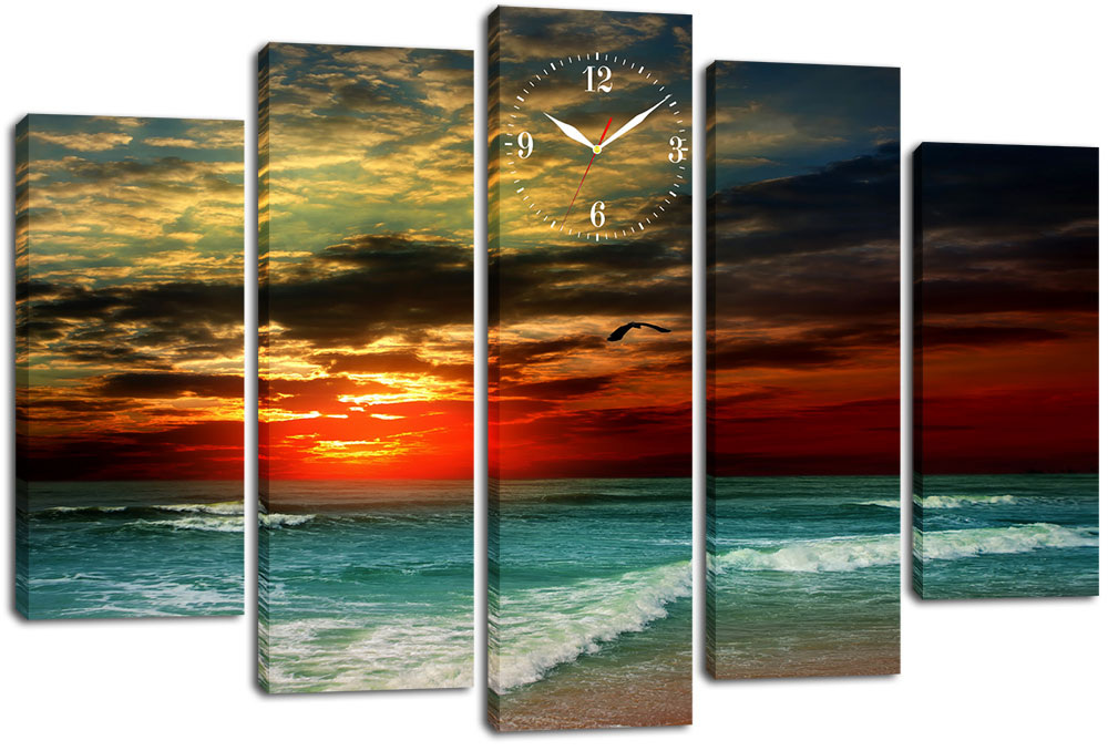 Розміри модулів: 32x80см – 1шт, 20x70см – 2шт, 20x60см – 2шт. Тихохідний механізм. Модульні картини з годинником – це стильне рішення для Вашого дизайну, яке миттєво перетворить навколишнє оточення! Модульний годинник - це кілька картин, які поєднуються тематичністю, сюжетною лінією або певною палітрою кольорів і доповнюються працюючим аксесуаром. Годинник-картина має якісний кварцовий механізм, який забезпечує тривалу ефективну роботу аксесуара з мінімальною секундною похибкою. Хочете купити годинник, але лякає дратівливий монотонний звук, який заважає відпочивати та міцно спати? Не хвилюйтеся, ці картини-годинники абсолютно безшумні! Ще однією приємною новиною для наших покупців, окрім доступної ціни від виробника, є річна гарантія на наш годинник.