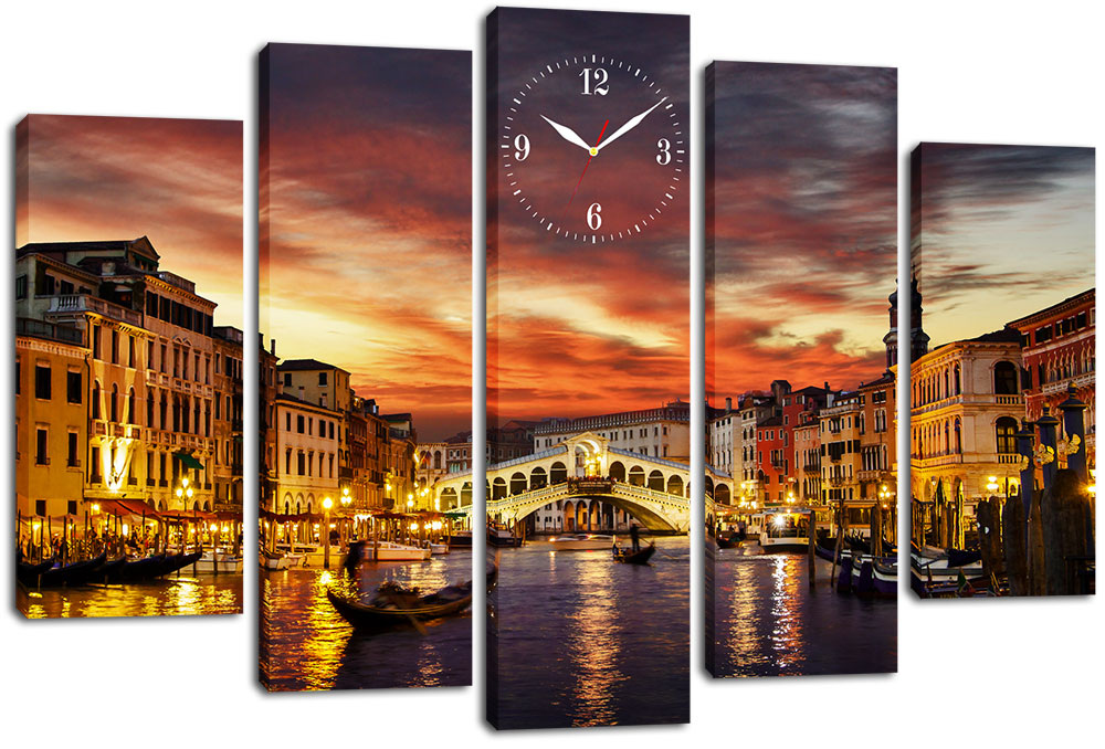 Розміри модулів: 32x80см – 1шт, 20x70см – 2шт, 20x60см – 2шт. Тихохідний механізм. Модульні картини з годинником – це стильне рішення для Вашого дизайну, яке миттєво перетворить навколишнє оточення! Модульний годинник - це кілька картин, які поєднуються тематичністю, сюжетною лінією або певною палітрою кольорів і доповнюються працюючим аксесуаром. Годинник-картина має якісний кварцовий механізм, який забезпечує тривалу ефективну роботу аксесуара з мінімальною секундною похибкою. Хочете купити годинник, але лякає дратівливий монотонний звук, який заважає відпочивати та міцно спати? Не хвилюйтеся, ці картини-годинники абсолютно безшумні! Ще однією приємною новиною для наших покупців, окрім доступної ціни від виробника, є річна гарантія на наш годинник.