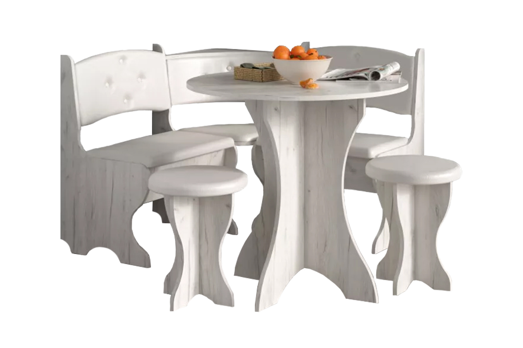 Характеристики товару Кухонний комплект NordicNosh (Крафт + Білий, куточок, стіл та 2 табуретки)