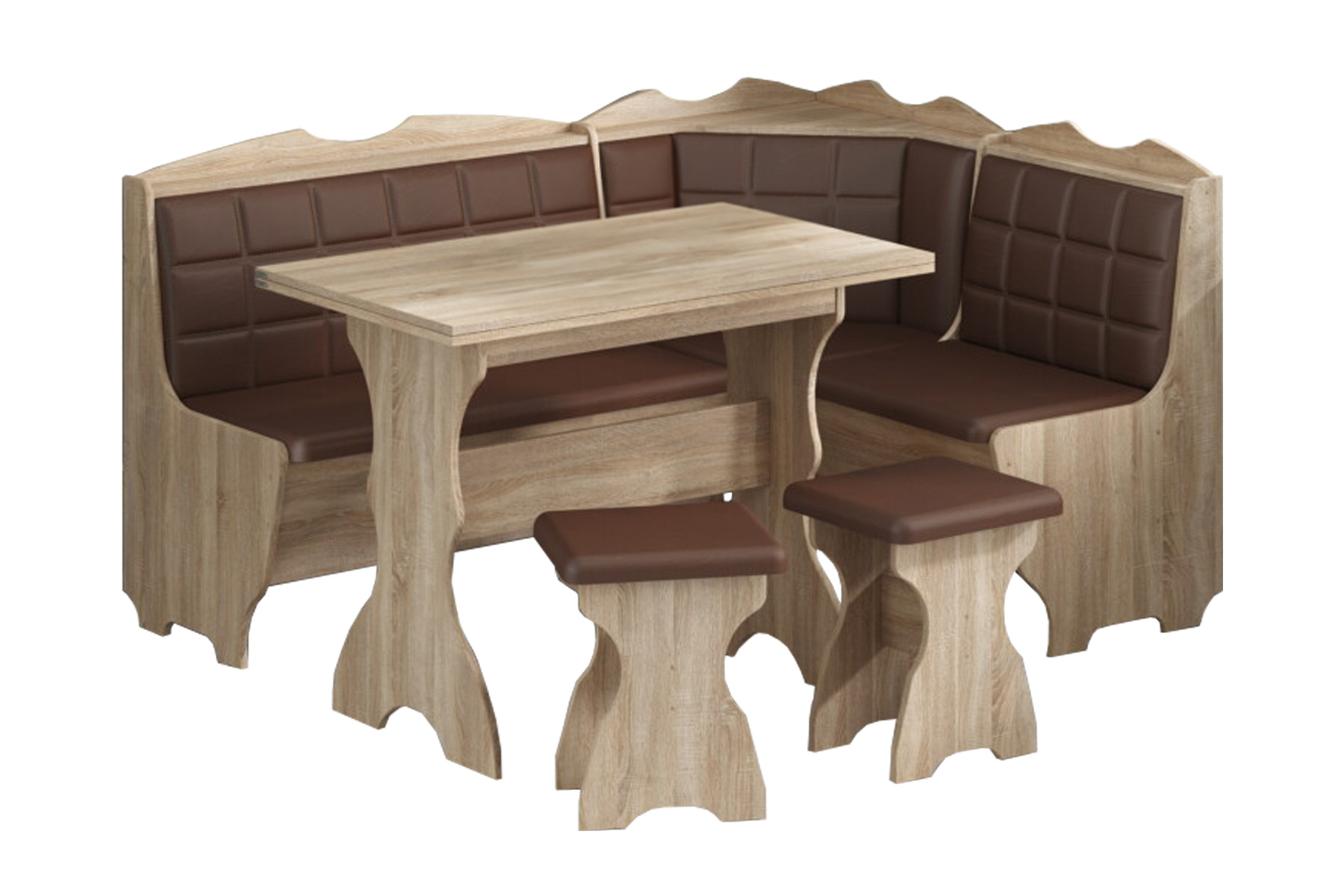 Кухонний комплект SupperSpace (Сонома + Коричневий, куточок, стіл та 2 табуретки)