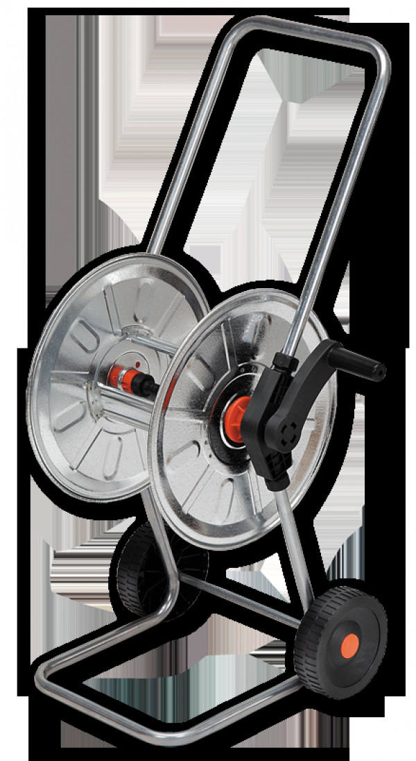 Візок для шланга, 1/2'' 50м, ZINCATO, AG210 Візок призначений для компактного зберігання та переміщення поливального шланга. Стійка міцна конструкція виготовлена з оцинкованої сталі. Великою перевагою даної моделі візків є довга ручка, що полегшує переміщення візка. Барабан оснащено рухомим адаптером, який запобігає переламуванню шланга при його скручуванні. Пластикові колеса мають протиковзний профіль.