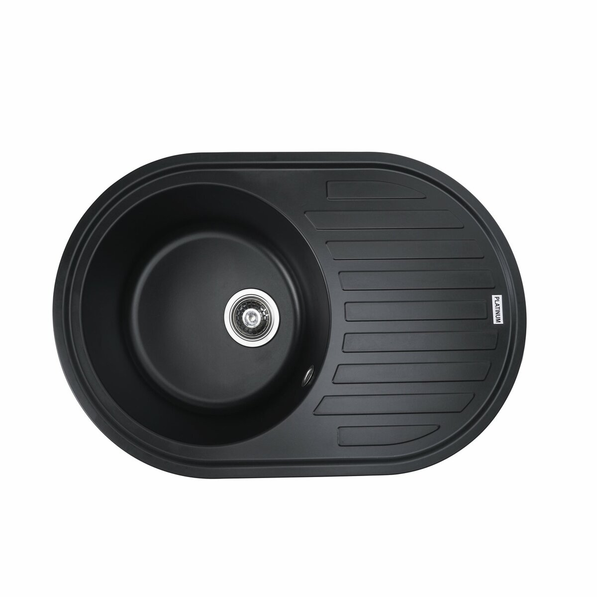 Гранитная мойка для кухни Platinum 7750 LIRA матовая овальная, с крылом, черная металлик 4248 грн/шт Купити