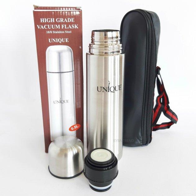 Термос із чохлом UNIQUE UN-1002 0,5 л UNIQUE UN - 1002-питний термоз ємністю на 0,5 л. Корпус виробу виконаний з нержавіючої сталі з подвійними стінками та герметичною кришкою, що дозволяє зберігати температуру напою протягом тривалого часу. Термос стійкий до механічних пошкоджень та подряпин. Кришка термоса в походах може служити чашкою. Технічні характеристики: Матеріал зовнішньої стінки: Нержавіюча сталь Матеріал колби: Нержавіюча сталь Об'єм: 0,5 л. Помповий механізм Soft-Touch вставка Час збереження тепла: 12 год Час збереження холоду: 12 год Комплектація: Термос; Чохол. Характеристики: Стан - Новий Сірий колір Об'єм - 500 мл Час збереження тепла – 12год. Чохол для зберігання та транспортування - Так Тип термосу - Питний Матеріал корпусу термоса - Нержавіюча сталь Час збереження холоду – 12год. Помповий механізм - Так