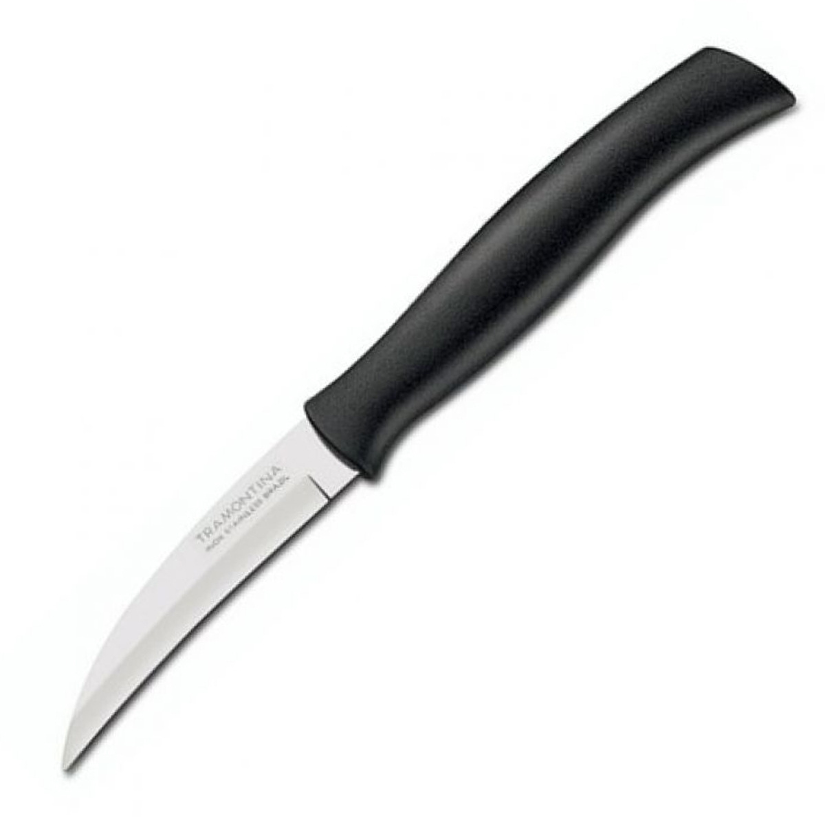 Tramontina Athus 23079/003 — кухонный нож для овощей. Он прекрасно справляется со своими задачами на кухне, удобен в работе и сделан из качественных материалов. Этот небольшой нож с серповидной формой лезвия идеально подойдёт для чистки овощей и фруктов.