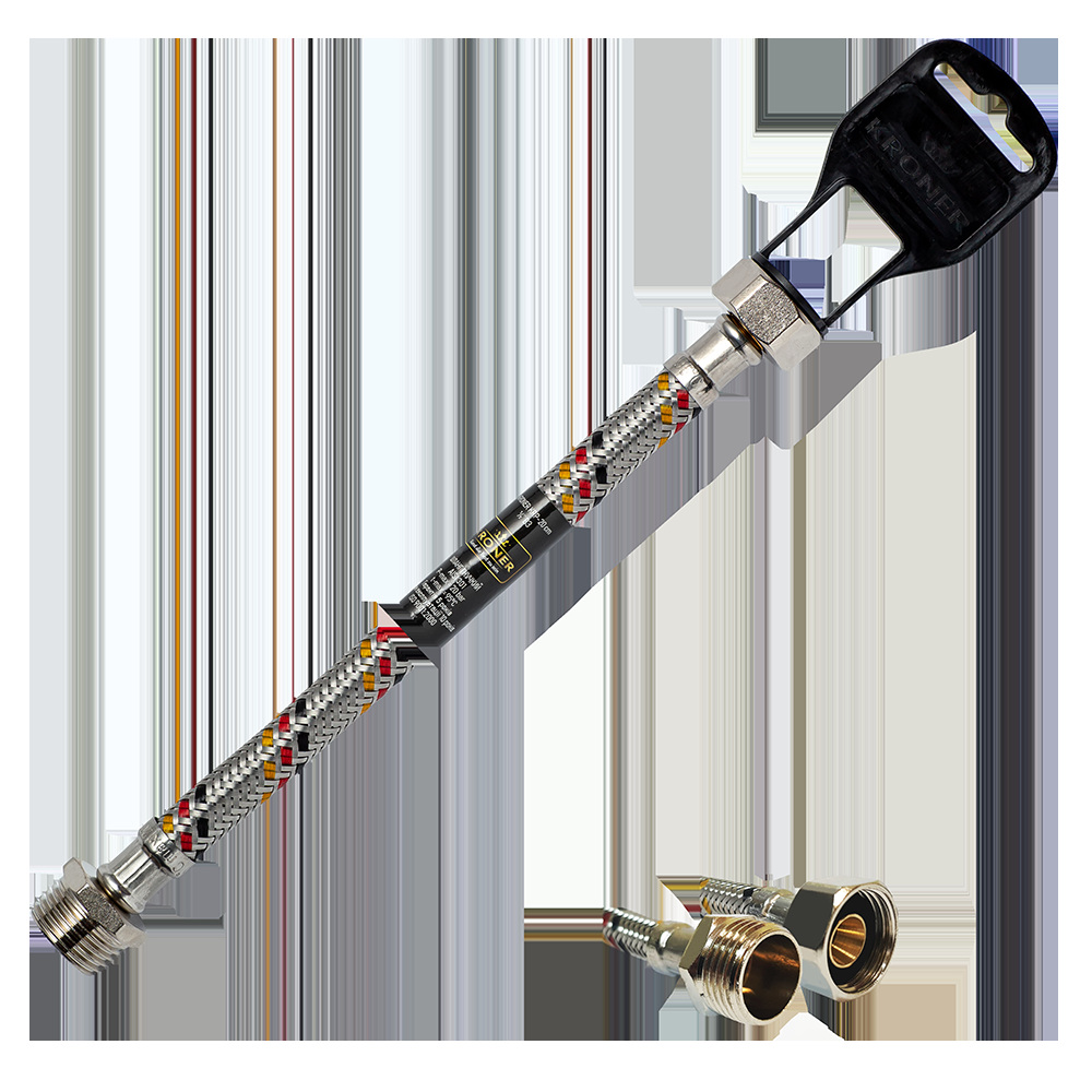 Гибкие шланги от немецкой компании Kroner предназначены для подключения к системе водоснабжения сантехнических изделий: смесителей, проточных электрических и газовых водонагревателей, унитазов, бойлеров и др.