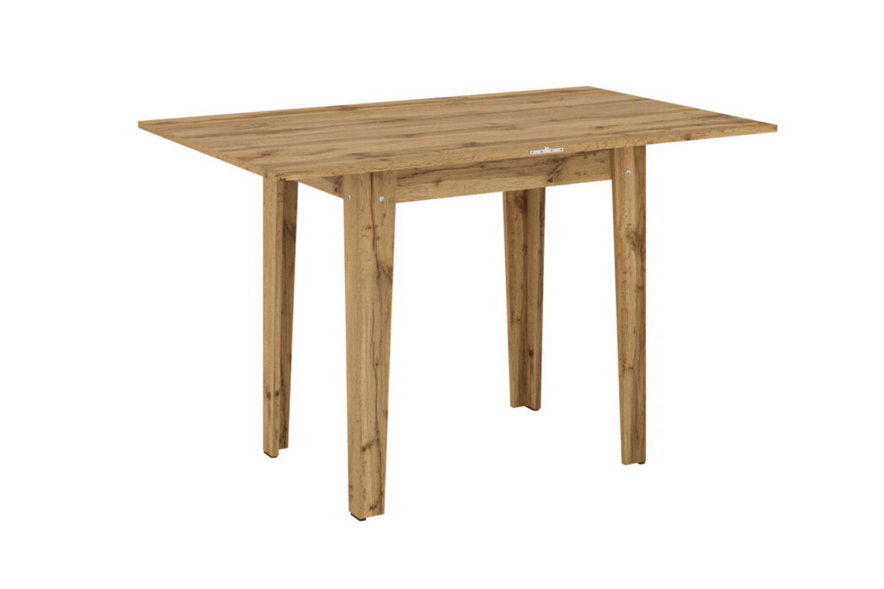 Цей розкладний стіл має простий і елегантний дизайн, який добре підходить для будь-якого інтер'єру. У складеному стані стіл компактний і займає мінімум місця. Стільниця має прямокутну форму. Це дозволяє зручно використовувати його, як невеликий обідній стіл або робочу поверхню.