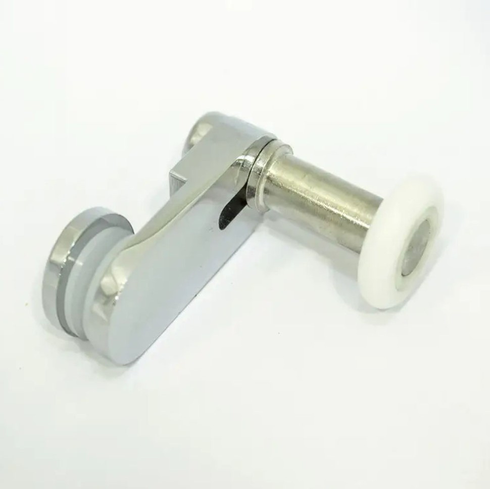 Данная модель ролика с большим шагом регулировки для увеличения высоты стекла. Колесо предназначено для крепления к раме двери душевой кабины. Посадочное отверстие 8 мм. Ролик фиксируется на стекле с помощью болта и круглой хромированной шайбы диаметром 20 мм. Все посадочные детали выполнены из пластика. Колесо ролика освобождено на оси. Вылет колеса составляет 38 мм. Длина вертикального паза под ось колеса составляет 16 мм. Длина корпуса ролика 50 мм. Ширина корпуса 20 мм. Ось, с завальцованым на ней колесом фиксируется в пазу с помощью болта с декоративным хромированным колпачком.