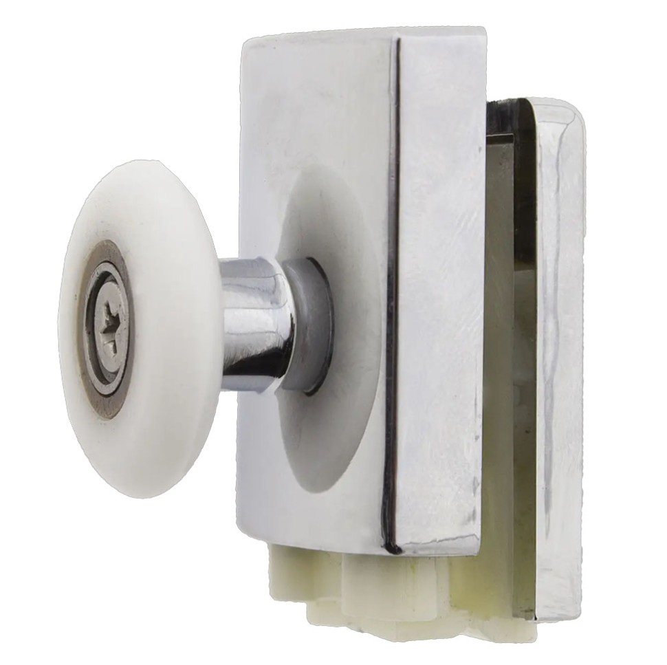 Ставится в нижней части стекла. Задняя часть ролика закрывается декоративным колпачком. Пружины спрятаны в корпусе ролика. Корпус пластиковый, не возвратный, все металлические детали изготовлены из нержавеющих материалов. Посадочные детали изготовлены из пластика, что предотвращает повреждение стекла при установке ролика. При подборе ролика необходимо точно знать внутренний диаметр посадочного отверстия в стекле. Колеса со специальной подшипником, с металлической сепарацией и пластиковыми сальниками, и водоотталкивающей смазкой. Колеса съемные – крепятся болтом. В душевых кабинах с двумя дверцами ролики комплектуются по 8 штук на кабину.
