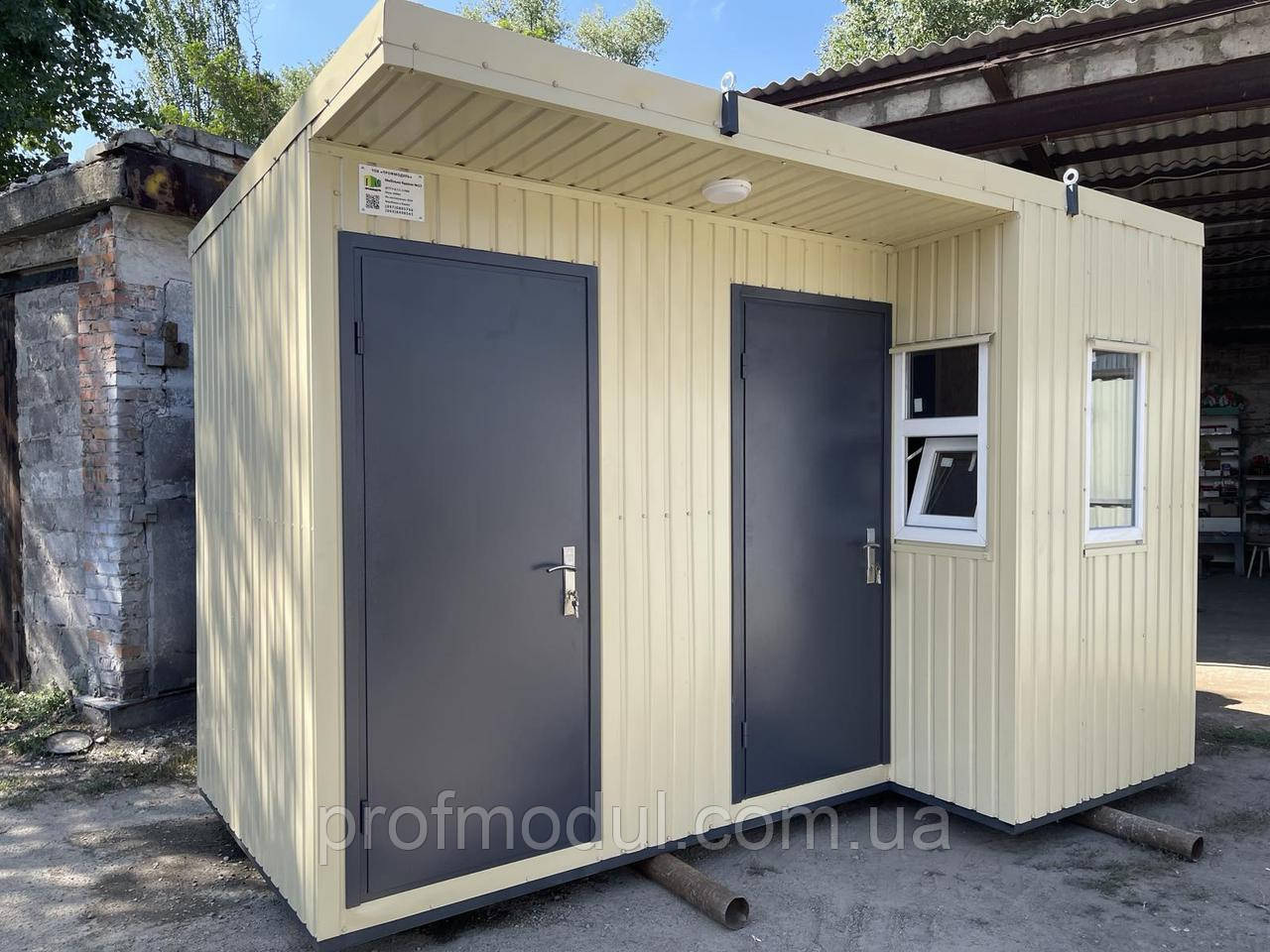 Габаритні розміри 4х2.4м Має 2 туалетні кабінки, та приміщення для касира. Кожна кабінка має умивальник, чашу Генуя, витяжку.