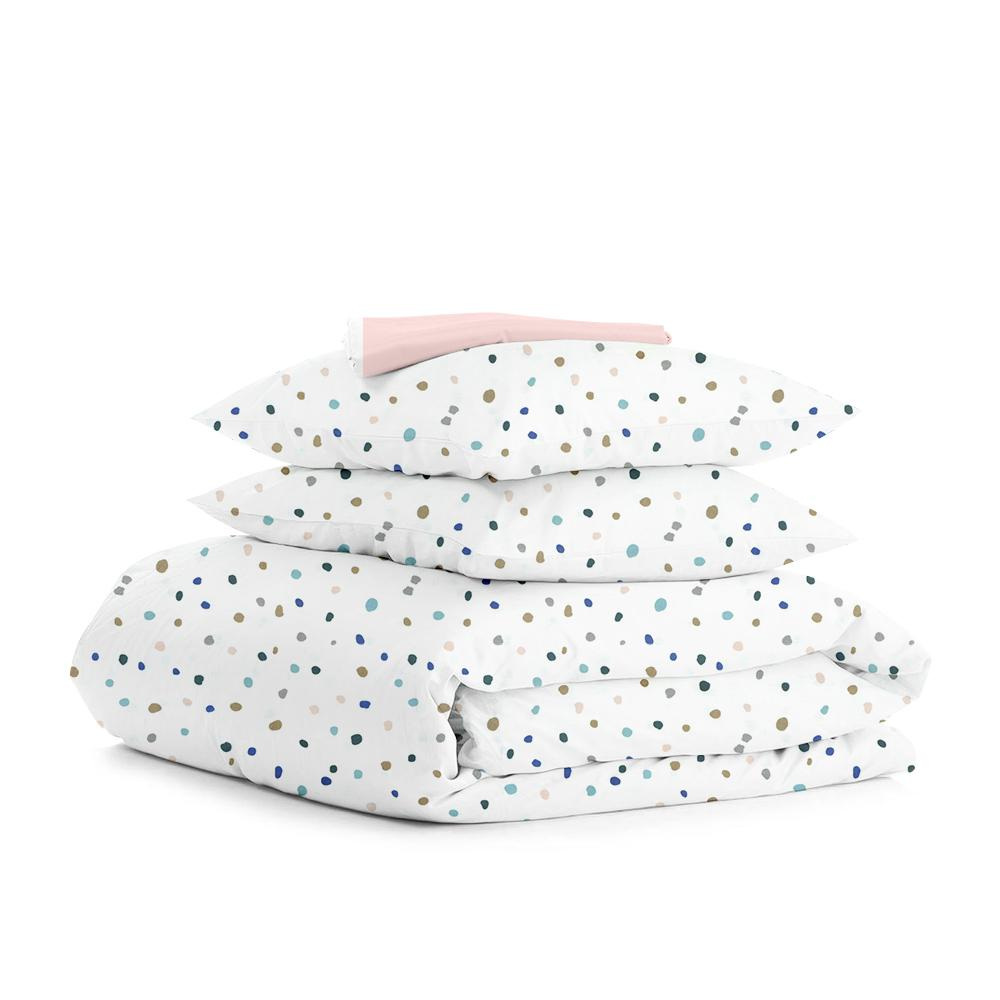 Семейный комплект на резинке Cosas COLOR BLOTS CS4 Ранфорс 2х160х220 см Белый/Розовый