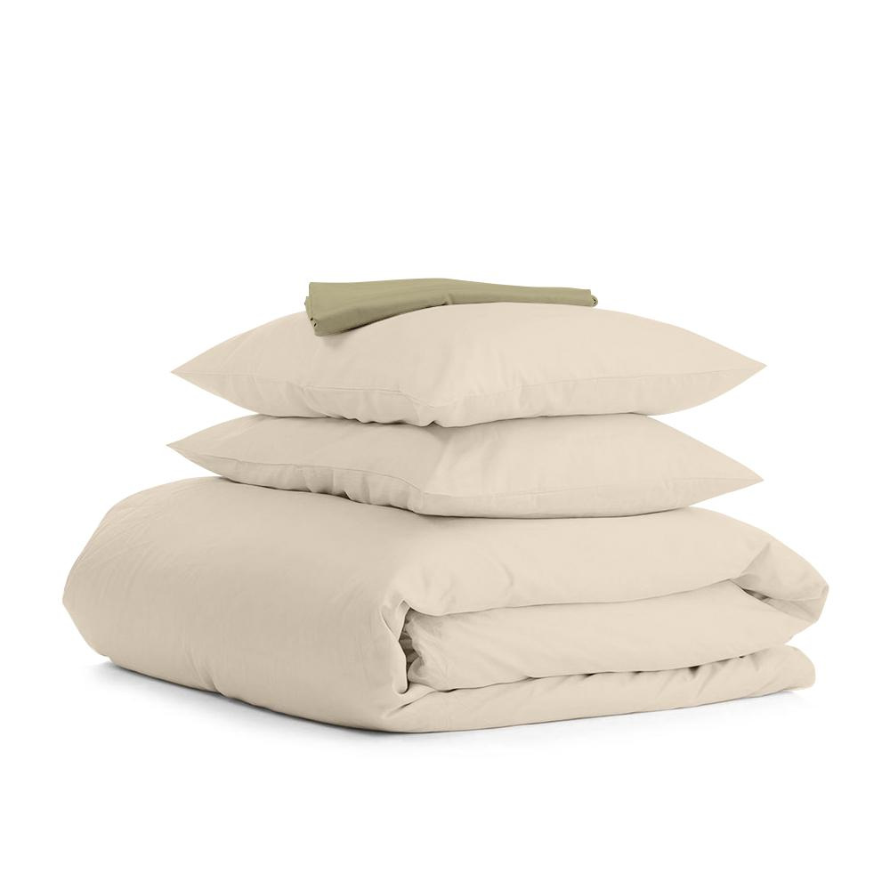 Евро комплект Cosas BISCUIT CS1 Ранфорс 200х220 см Бежевый/Оливковый