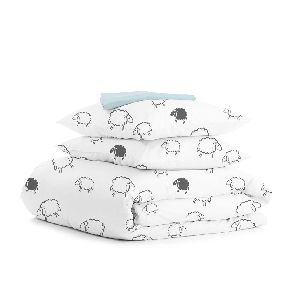 Опис Полуторная постель с простыней на резинке Sheep Dark Grey Cosas серый 160х220 см