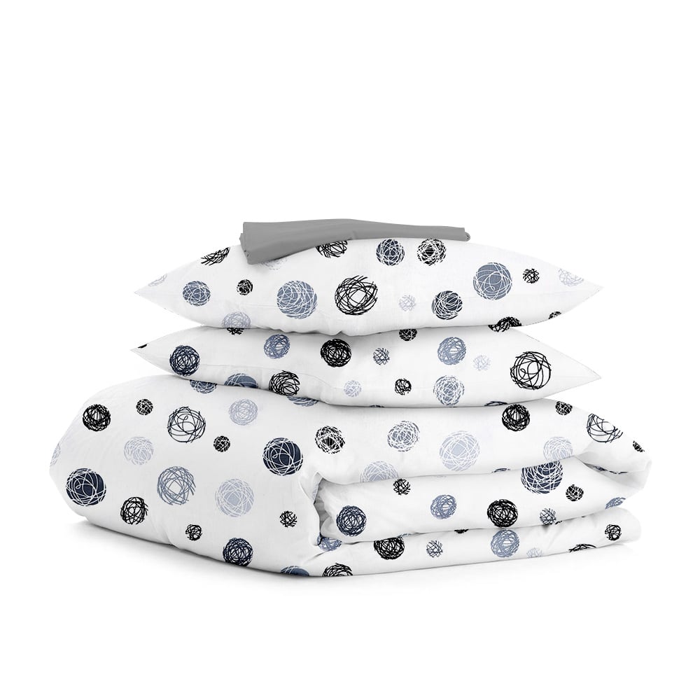 Опис Двуспальная постель с простыней на резинке Yarn Balls CS8 Cosas серый 180х220 см