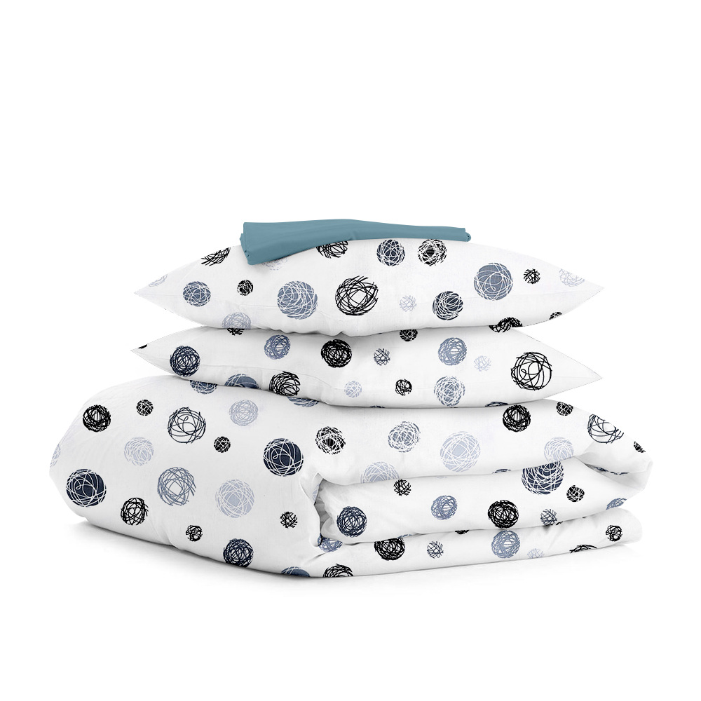 Евро постель с простыней на резинке Yarn Balls CS2 Cosas серый 200х220 см