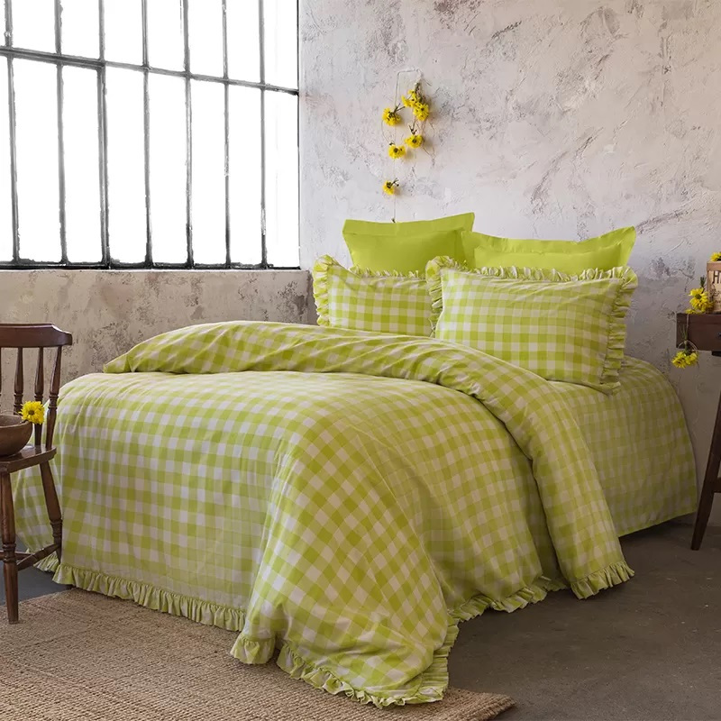 Бренд: Renovation of home Тип ткани: натуральная Состав ткани: 100% хлопок Плотность ткани: высокой плотности плетения Вид ткани: ранфорс Тип комплекта: зима-лето Спальный размер: евро Наволочка, шт.: 2 Размер наволочки, см: 50х70 Размер простыни, см: 240х260 Размер пододеяльника, см: 200х220 Застёжка: на пуговицах Дизайн: двусторонняя расцветка, оборки, принт Тип рисунка: клетка Упаковка: подарочная упаковка Страна производства: Турция Рекомендации по уходу — машинная стирка при температуре 30 °С, точно придерживаться температуры воды; — не поддавать сильной механической обработке, медленный режим отжима; — не сушить в стиральной машине; — не отбеливать; — сушка в растянутом виде; — гладить при умеренной температуре: максимум 150 °С.