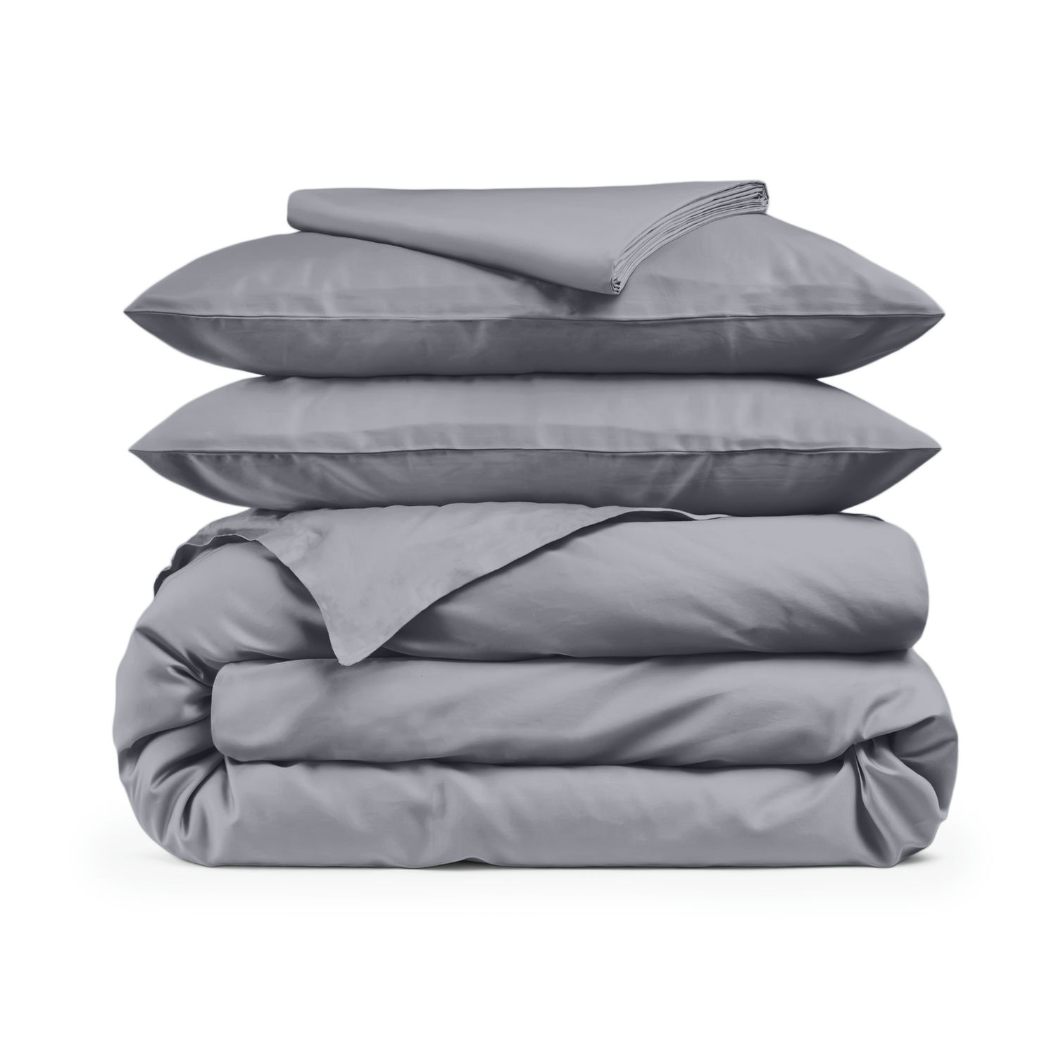 Двуспальная постель сатин с простыней на резинке URBAN Cosas Графит 180х220 см