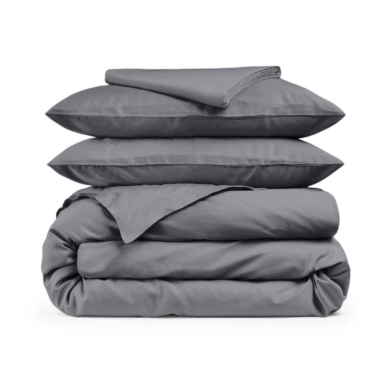 Характеристики товару Двуспальная постель сатин с простыней на резинке BELUGA Cosas серый 180х220 см