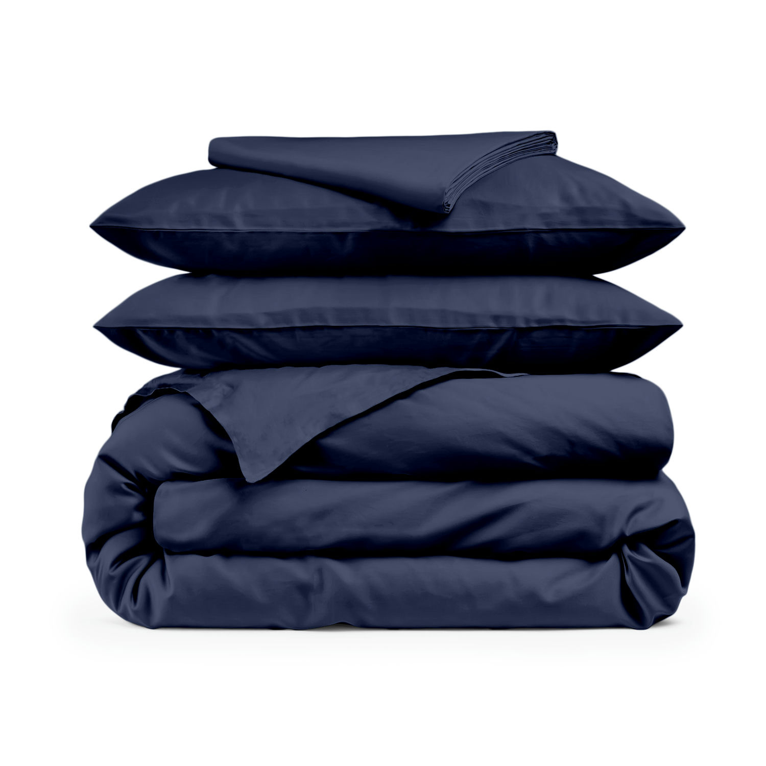 Двуспальная постель сатин с простыней на резинке BLUE Cosas Синий 180х220 см Бучач