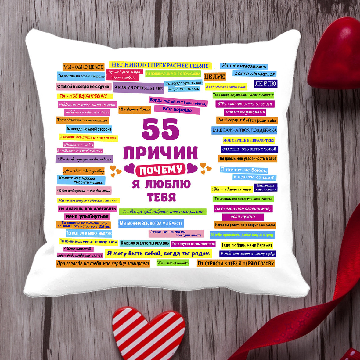 Подушка с принтом Love is "55 причин почему я люблю тебя" 2 Белый Кавун П000002