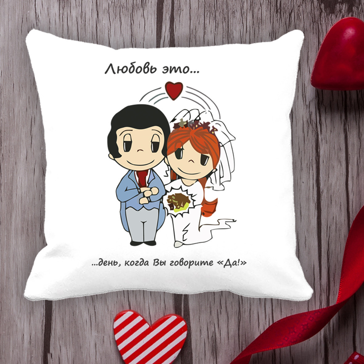 Подушка с принтом Love is Любовь это ... день, когда Вы говорите "Да!" Белый Кавун П000004