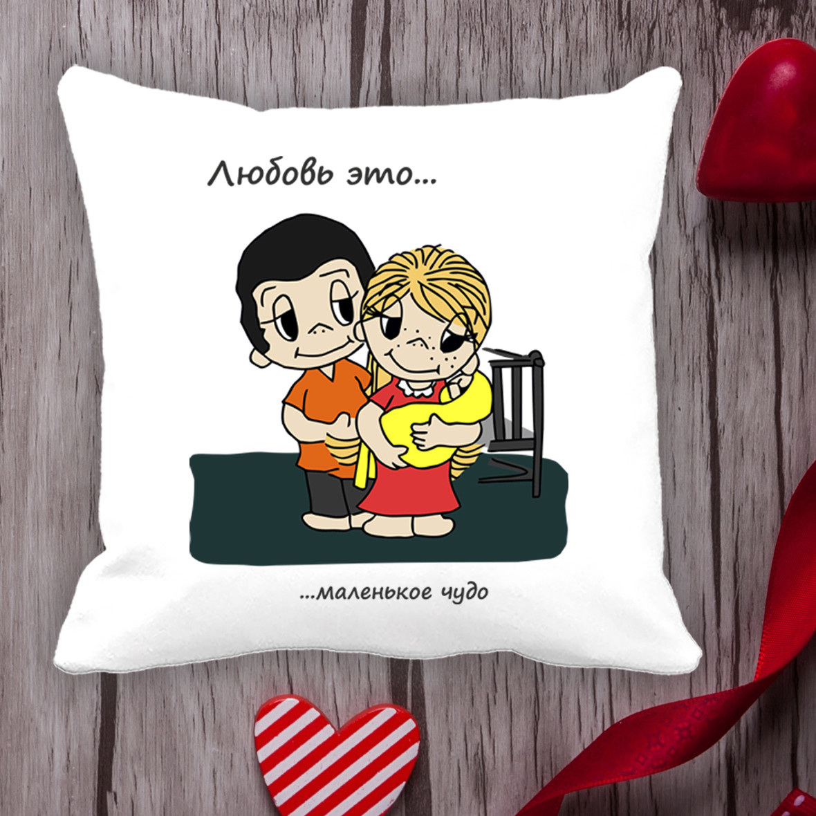 Подушка с принтом Love is "Любовь это ... Маленькое чудо" Белый Кавун П000015