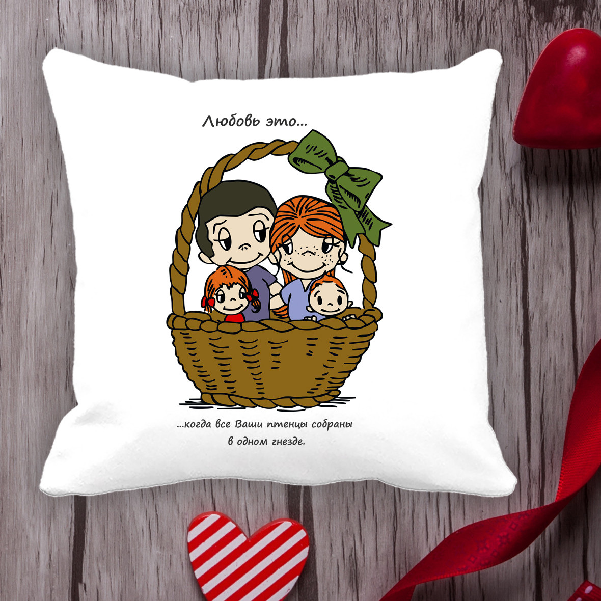 Подушка с принтом Love is "Любовь это ... когда все Ваши птенцы собраны в одном гнезде" Белый Кавун П000032