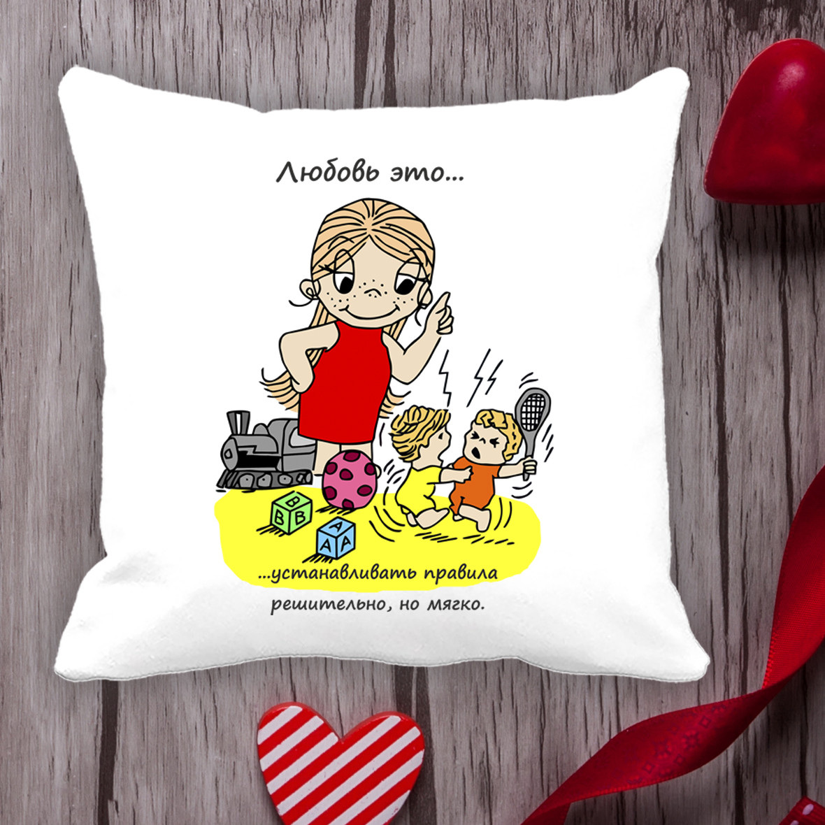 Подушка с принтом Love is "Любовь это... устанавливать правила решительно, но мягко" Белый Кавун П000081