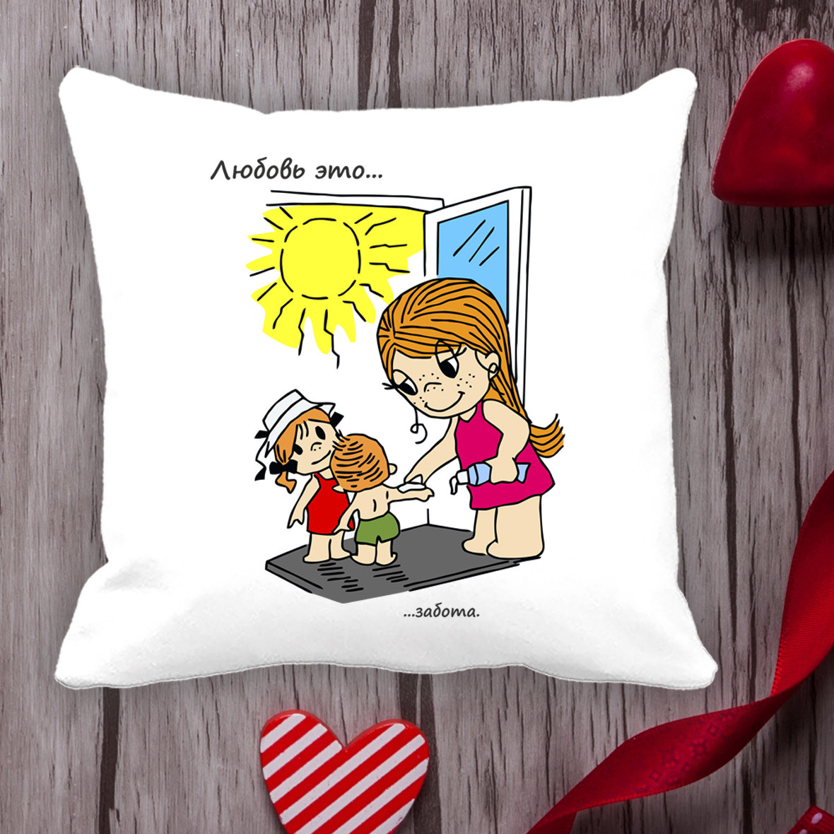 Подушка с принтом Love is "Любовь это... забота" Белый Кавун П000082
