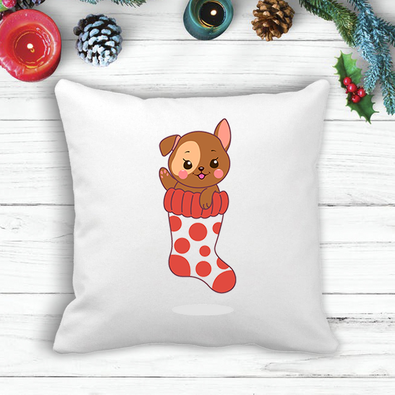 Подушка с новогодним принтом Щенок в носке Белый Кавун П003569