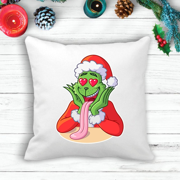 Подушка с новогодним принтом Гринч The Grinch Влюблен Белый Кавун П003600