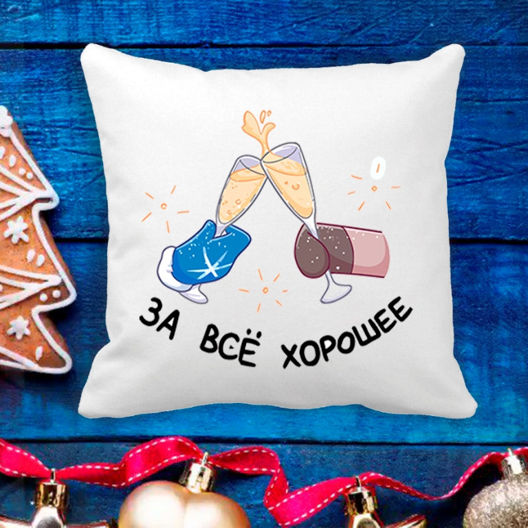 Подушка с новогодним принтом Бокалы шампанского "За всё хорошее" Белый Кавун П003646