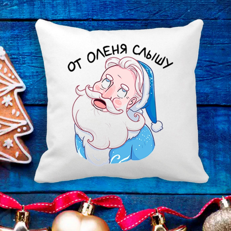 Подушка с новогодним принтом Дед Мороз "От оленя слышу" Белый Кавун П003660