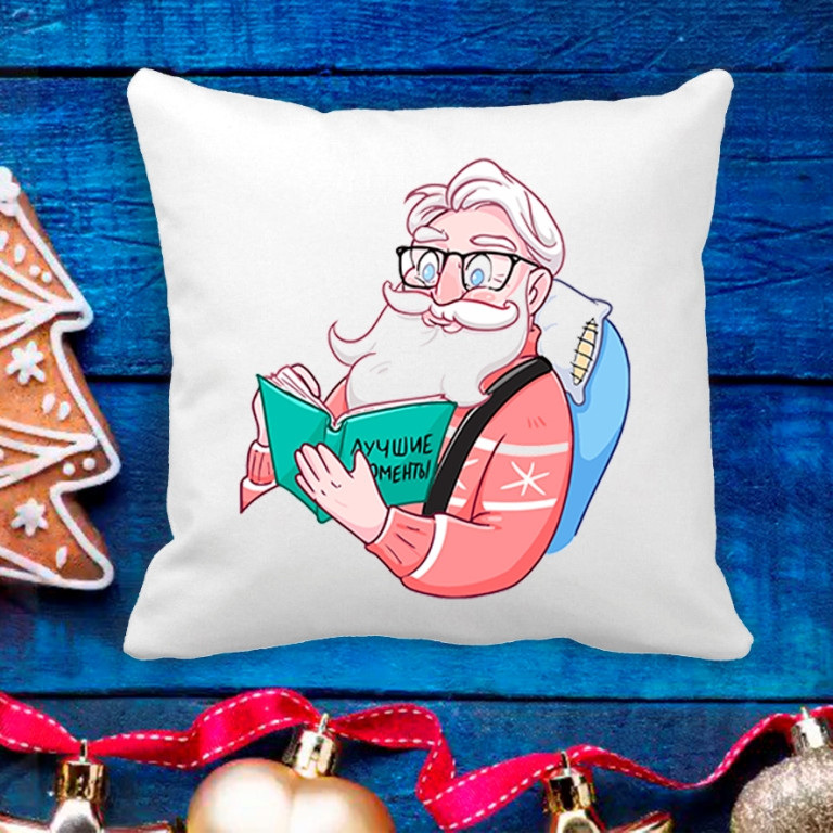 Подушка с новогодним принтом Дед Мороз "Лучшие моменты" Белый Кавун П003667
