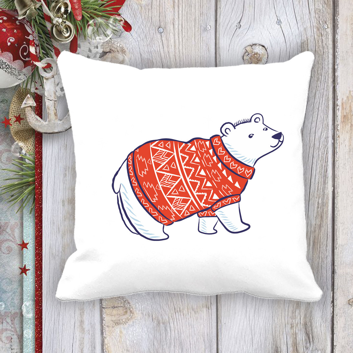 Подушка с новогодним принтом Белый медведь в свитере Белый Кавун П003700