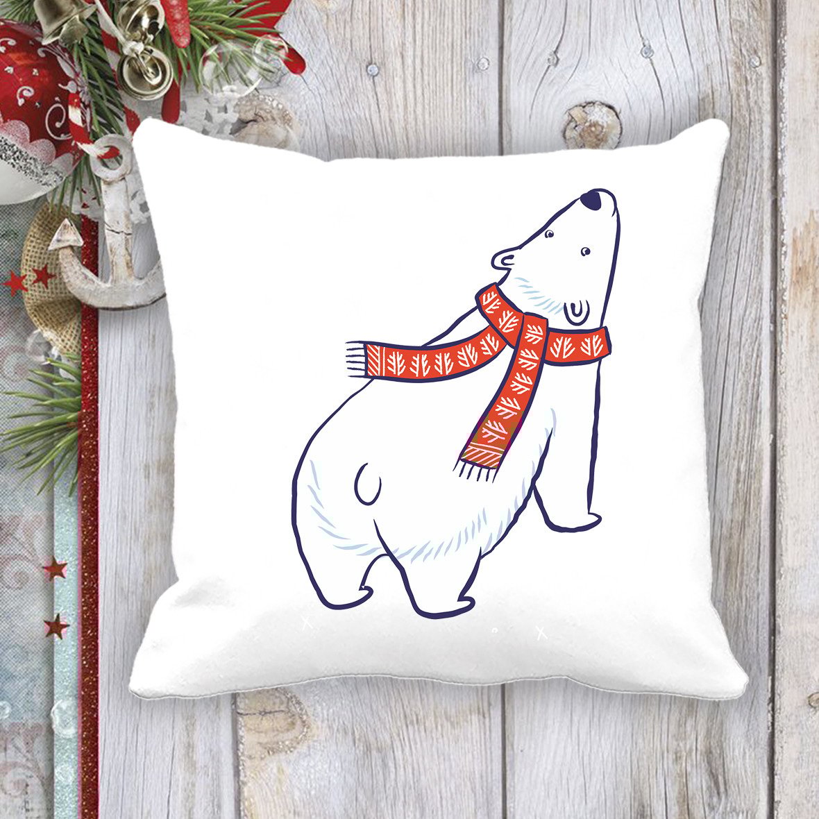 Подушка с новогодним принтом Белый медведь в шарфе Белый Кавун П003702