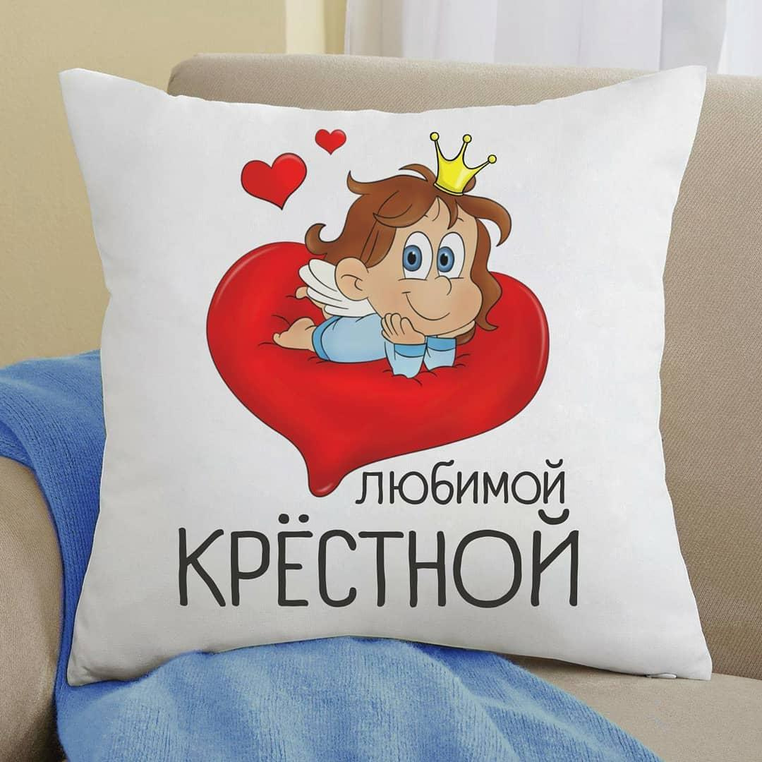 Подушка с принтом "Любимой крестной. Сердце" Белый Кавун П000164
