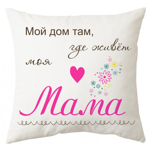 Подушка декоративная с принтом "Мой дом там, где живет моя Мама" Белый Кавун П000233