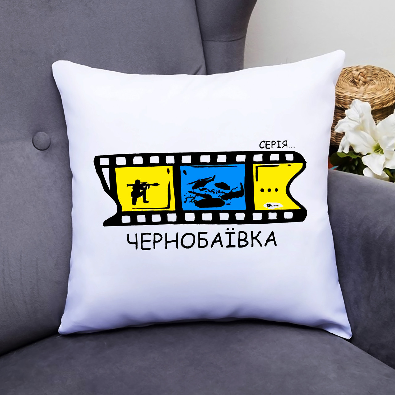 Подушка декоративная с принтом Кинолента "Серія Чернобаївка" Белый Кавун П000397