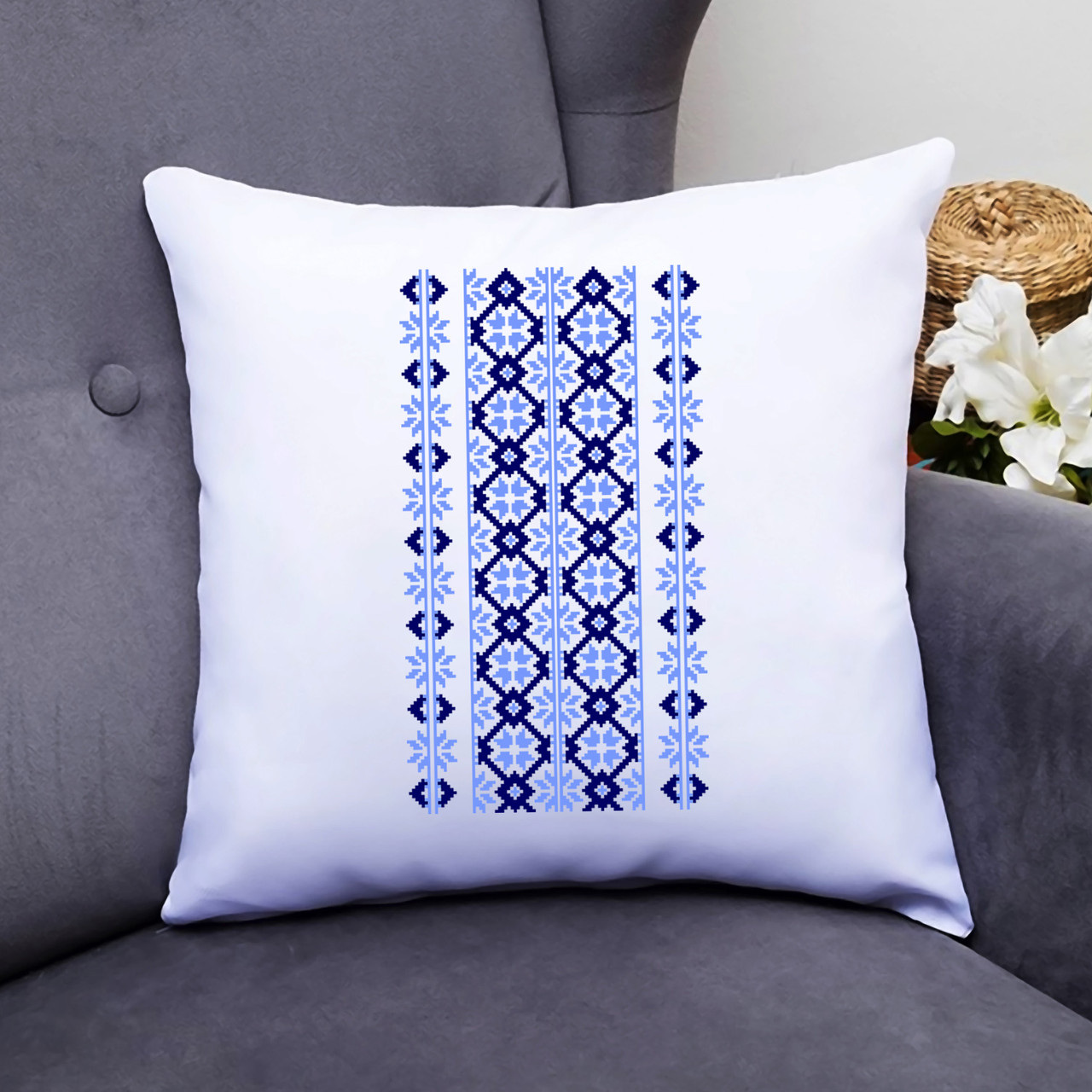 Опис Подушка декоративная с принтом "Синий орнамент вышиванки на груди" Push IT Белый Кавун П000436