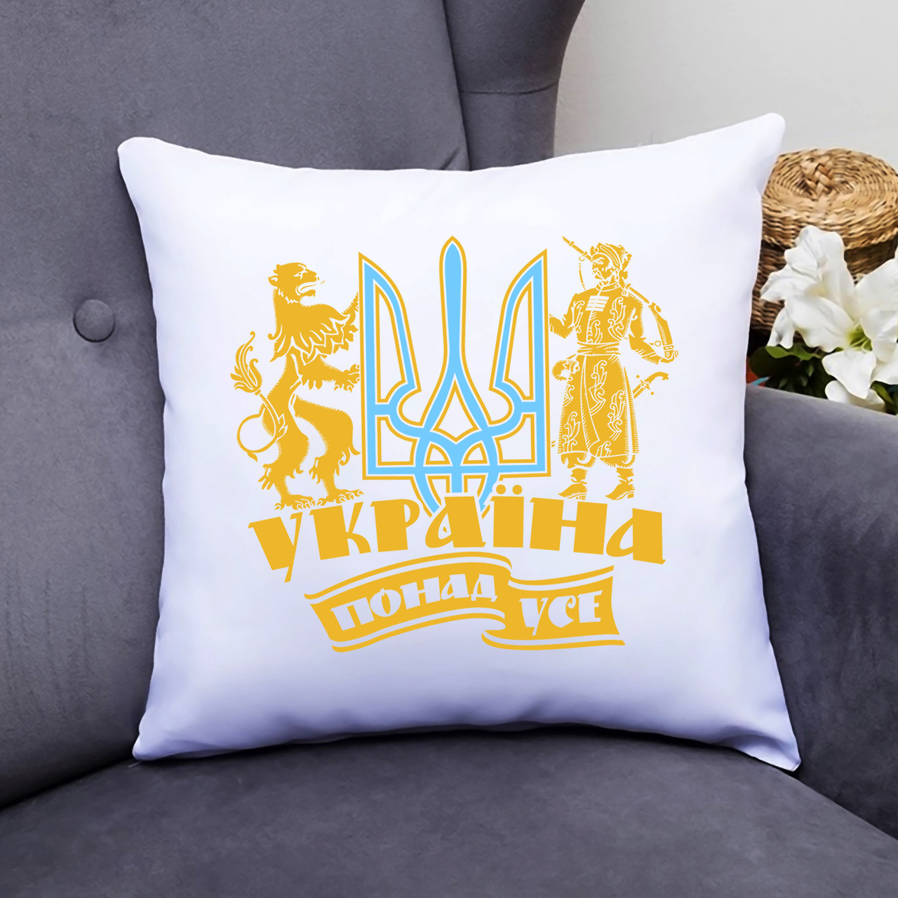 Подушка декоративная с принтом "Герб Украины со львом и казаком" Push IT Белый Кавун П000450