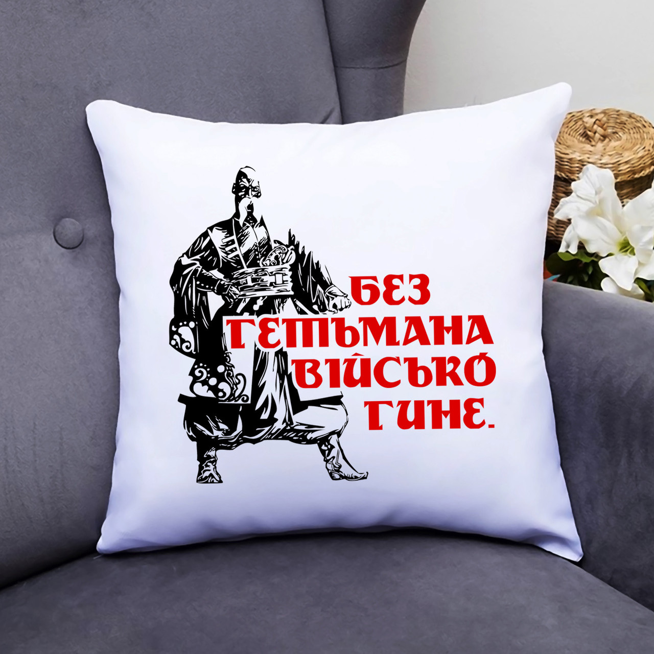 Опис Подушка декоративная с принтом "Без Гетмана войско погибает" Push IT Белый Кавун П000458