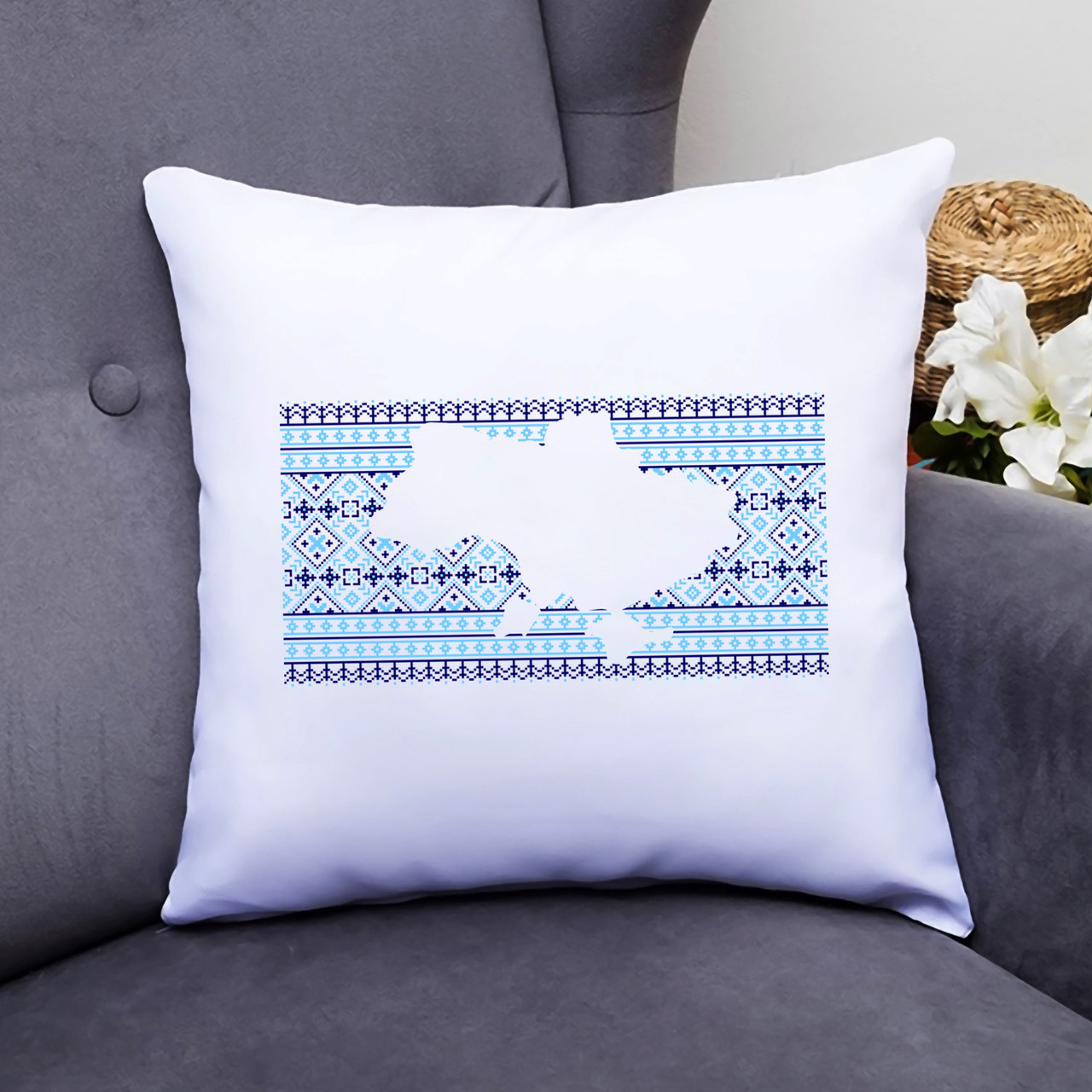 Подушка декоративная с принтом "Карта Украины на фоне синего орнамента" Push IT Белый Кавун П000465